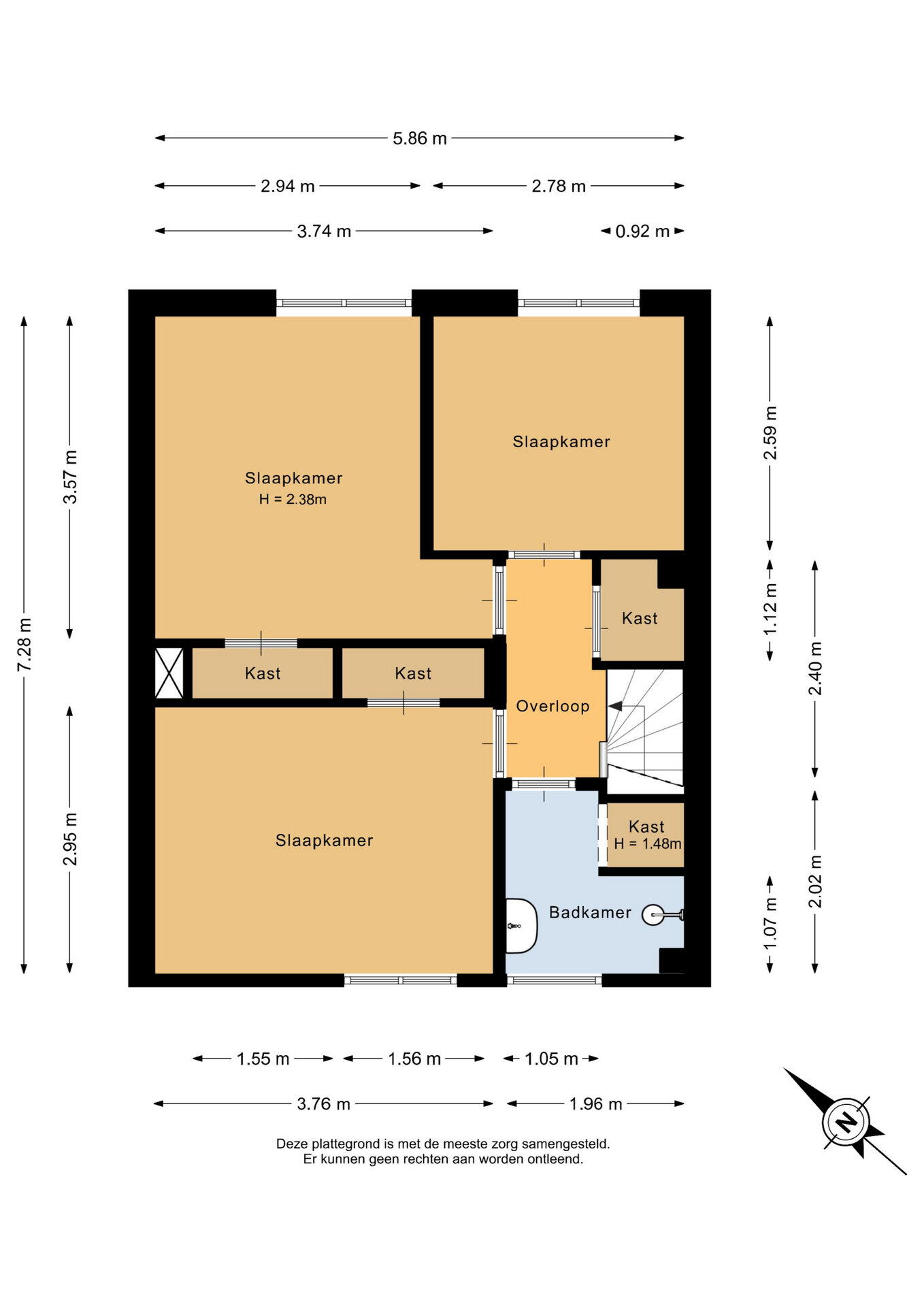 - Gelegen op het noordoosten en bereikbaar via achterom